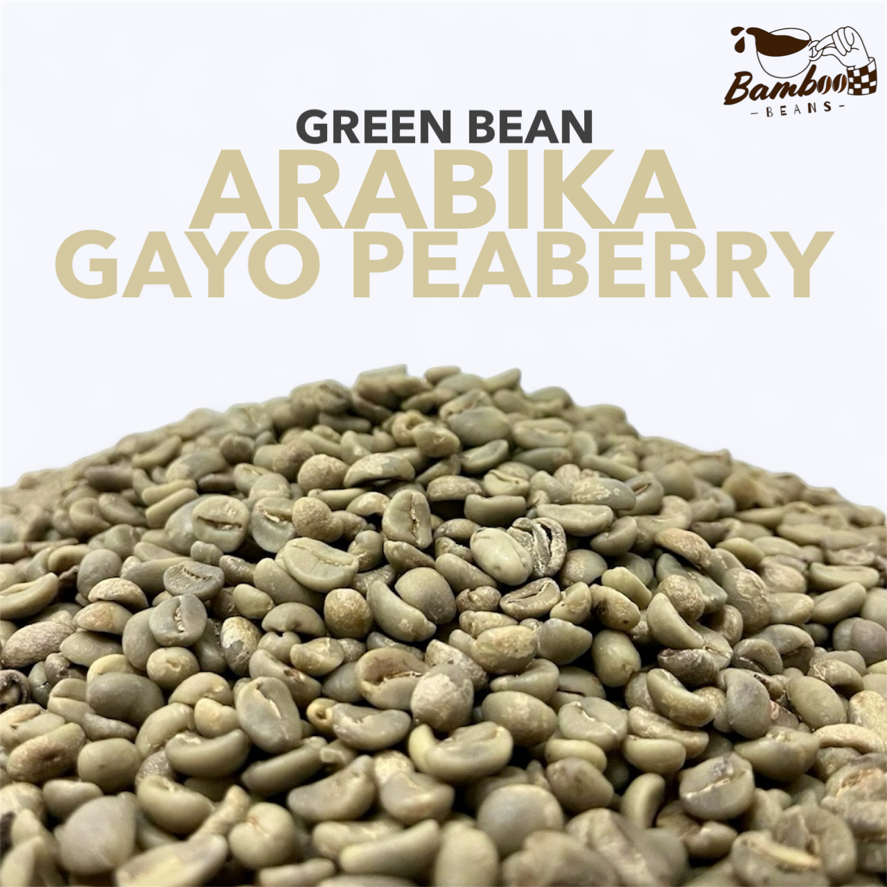 Green Bean Arabika Gayo Peaberry di panen langsung oleh para petani kopi Takengon, Aceh. Proses panen green bean diolah para petani kopi profesional sehingga paham akan pemilihan biji kopi yang berkualitas. Green bean ini Sudah melewati sortasi manual, bersih dari batu, ranting dll.
